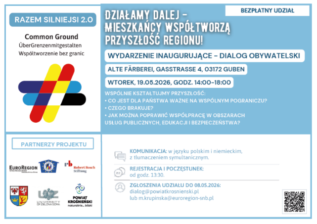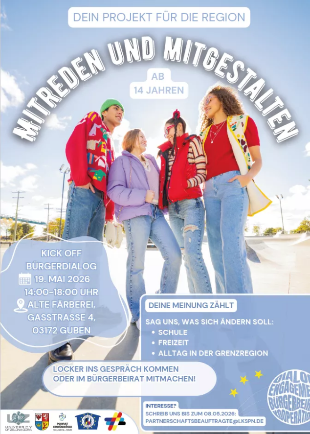 Dazu werden bis zum Ende 2027 wieder vier Bürgerdialoge im polnischen und deutschen Teil der Euroregion durchgeführt sowie der unterstützende Bürgerbeirat tätig sein. Die einzelnen Austauschformate werden erneut gemeinsam mit der Firma IKOME/ Steinbeis Mediation, einem starken Partner mit grenzüberschreitender Expertise zu Bürgerbeteiligungen, durchgeführt. Ebenfalls werden wir wieder vom nexus-Institut als Dienstleister der Robert-Bosch-Stiftung für Bürgerbeteiligungsprozesse begleitet.