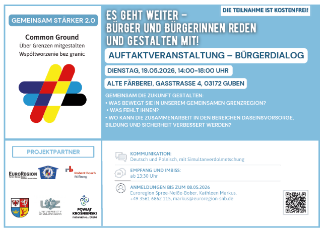 Die Euroregion Spree-Neiße-Bober ist in der zweiten Edition im Förderprogramm „Common Ground – Über Grenzen mitgestalten“ der Robert Bosch Stiftung eine von vier ausgewählten Regionen, die erneut unterstützt wird.