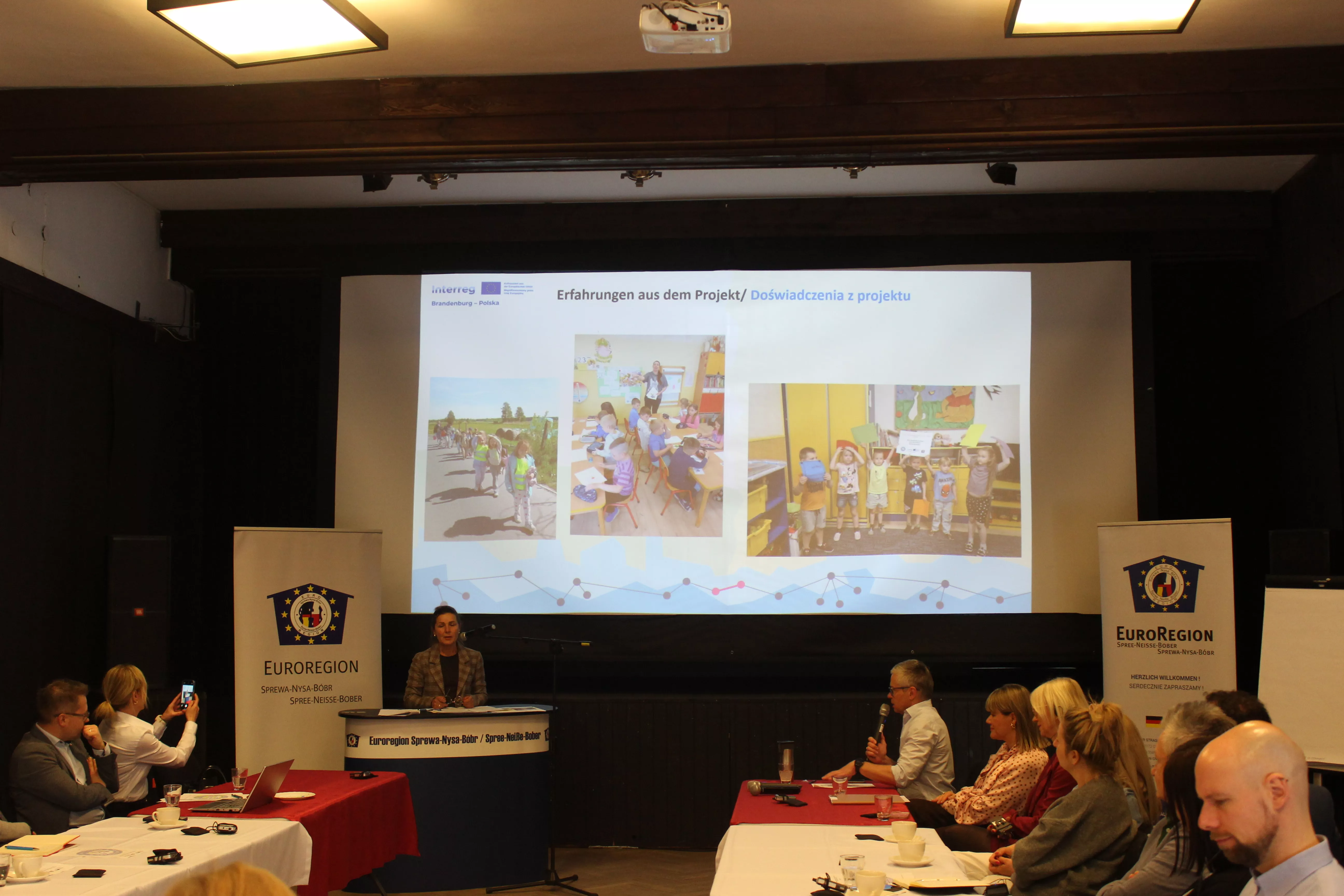 Dyrektorki przedszkoli, Pani Dorota Pawlik i Pani Daniela Stachetzki, opowiedziały o swoich pozytywnych doświadczeniach z projektu i zwróciły uwagę na korzyści immersji językowej- zarówno dla wychowawców, jak i uczestniczących dzieci. Oprócz tego przekazano pozytywne informacje dotyczące kontynuacji nauki języka polskiego. Jak poinformował dyrektor szkoły Frank Müller, w roku szkolnym 2026/2027 powróci możliwość fakultatywnej nauki języka polskiego we Friedensschule w Guben. ![]()